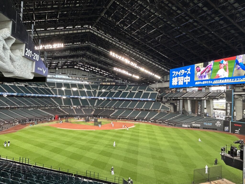 今回はファイターズ練習中の為グランドに入ったりすることはできませんでしたが